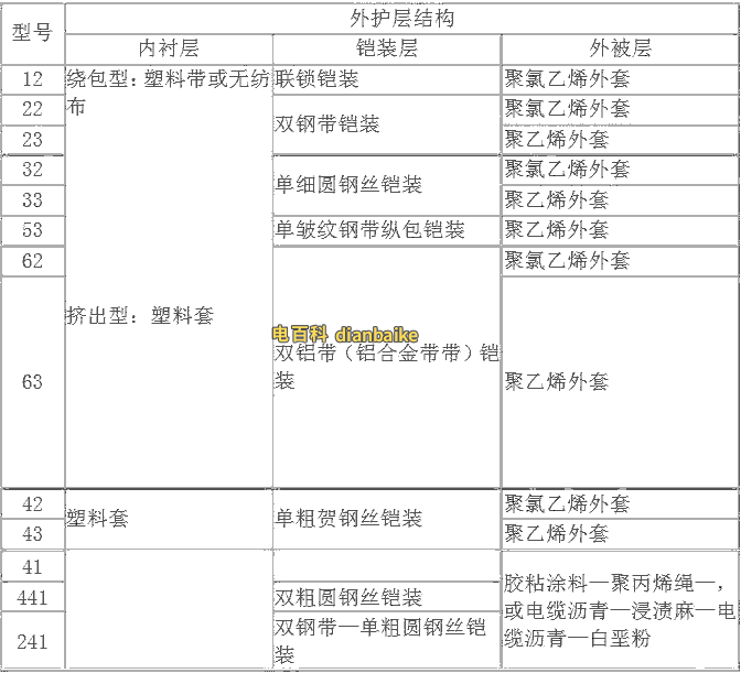 二、鎧裝電纜外護(hù)層結(jié)構(gòu)