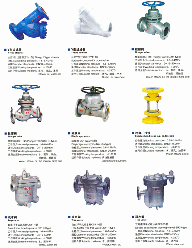過濾器、柱塞閥、隔膜閥、視盅、疏水閥