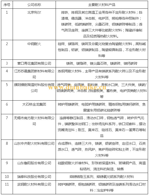 三、耐火磚主要生產(chǎn)廠家